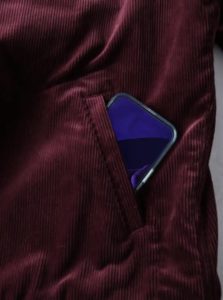 腹部には大型のスマホがしっかりと収まるポケットが備わっています。
