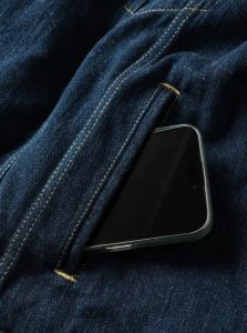 ポケット内にはシャトル織機で織り上げた生地の証でもある生地のミミ(端の部分)もワンポイントで使用。シャトル織機製であるというこだわりのディテールです。