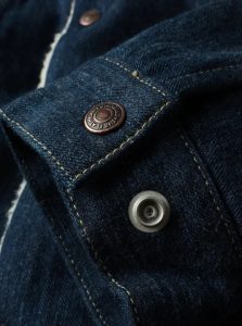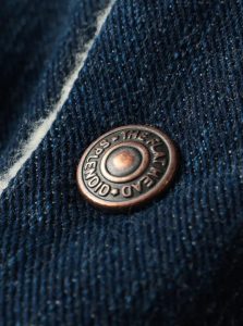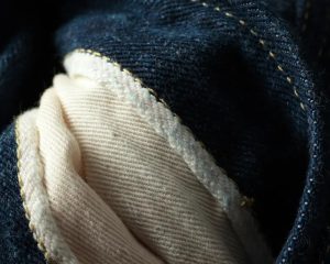 表地には程よくフェード加工した左綾ジンバブエコットンの12.5ozデニムを使用。