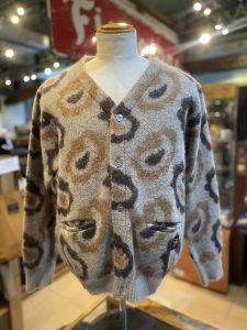オリジナルのペイズリーテキスタイルで制作したモヘアカーディガン。