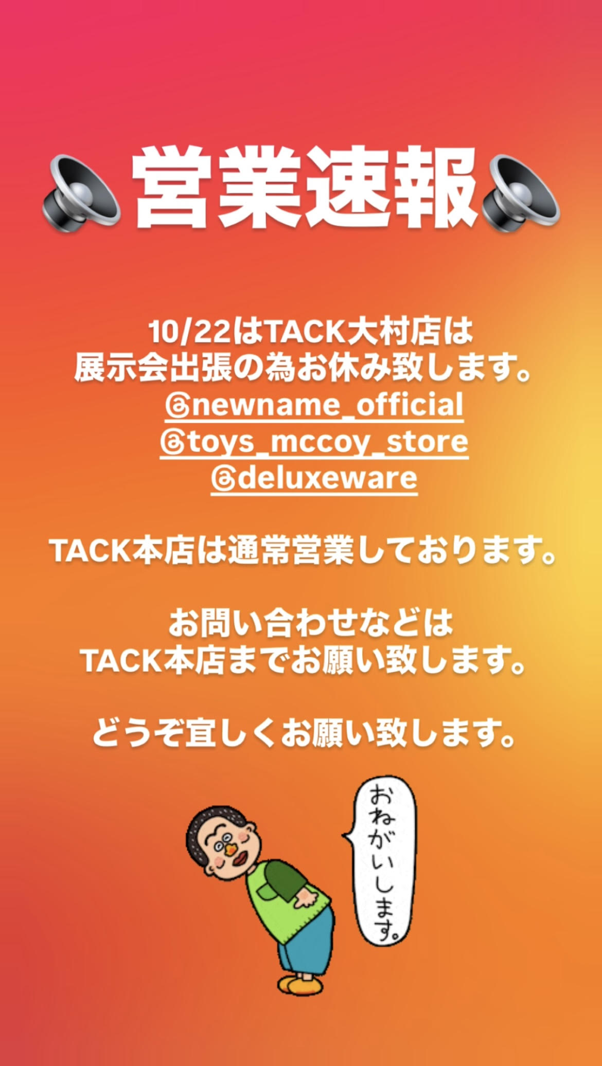 営業速報です📢 10/17-10/19はTACK本店はラング…